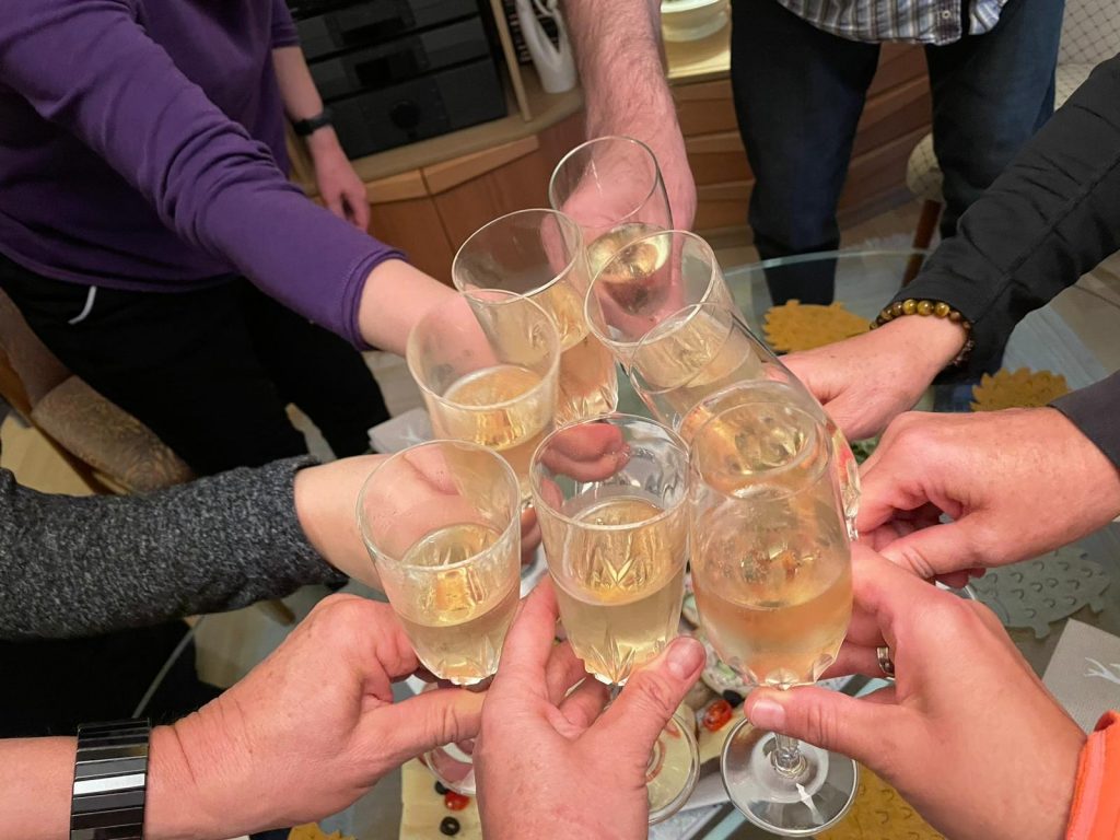 Dort wurden wir herzlich empfangen – mit Sektempfang und frisch gebackenen Egenhäuser Berda. Die beiden hatten sich sogar auf der Website von Egenhausen informiert, um das traditionelle Rezept möglichst originalgetreu nachzubacken.