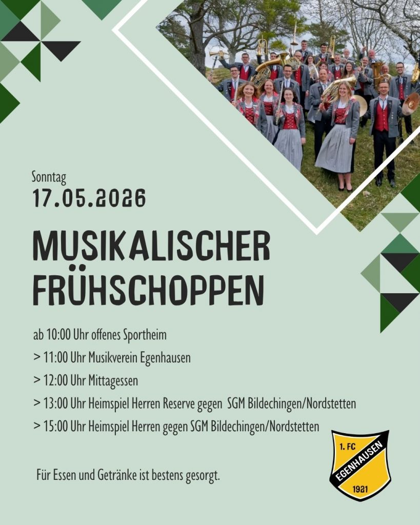 Der 1. FC Egenhausen lädt gemeinsam mit dem Musikverein Egenhausen herzlich zum musikalischen Frühschoppen ins Sportheim ein.